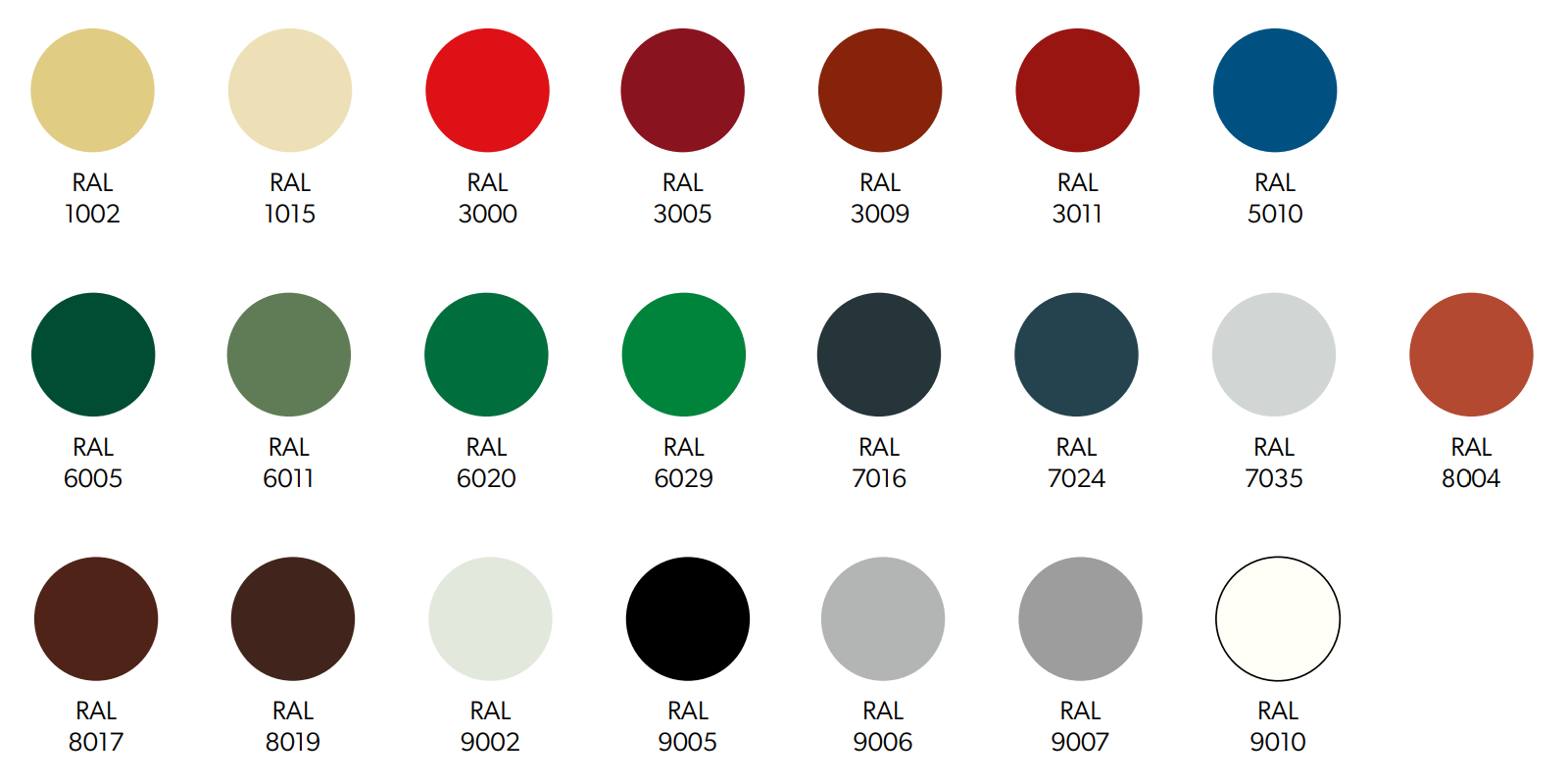 Az alap szerves bevonat 25 µm vastag. A felület egységes, sima- fényes vagy fémes. Széles körben felhasználható anyag. Igen gazdag, univerzális RAL színskála szerinti színválasztékban kapható. Garanciális időszak: 10 év *
